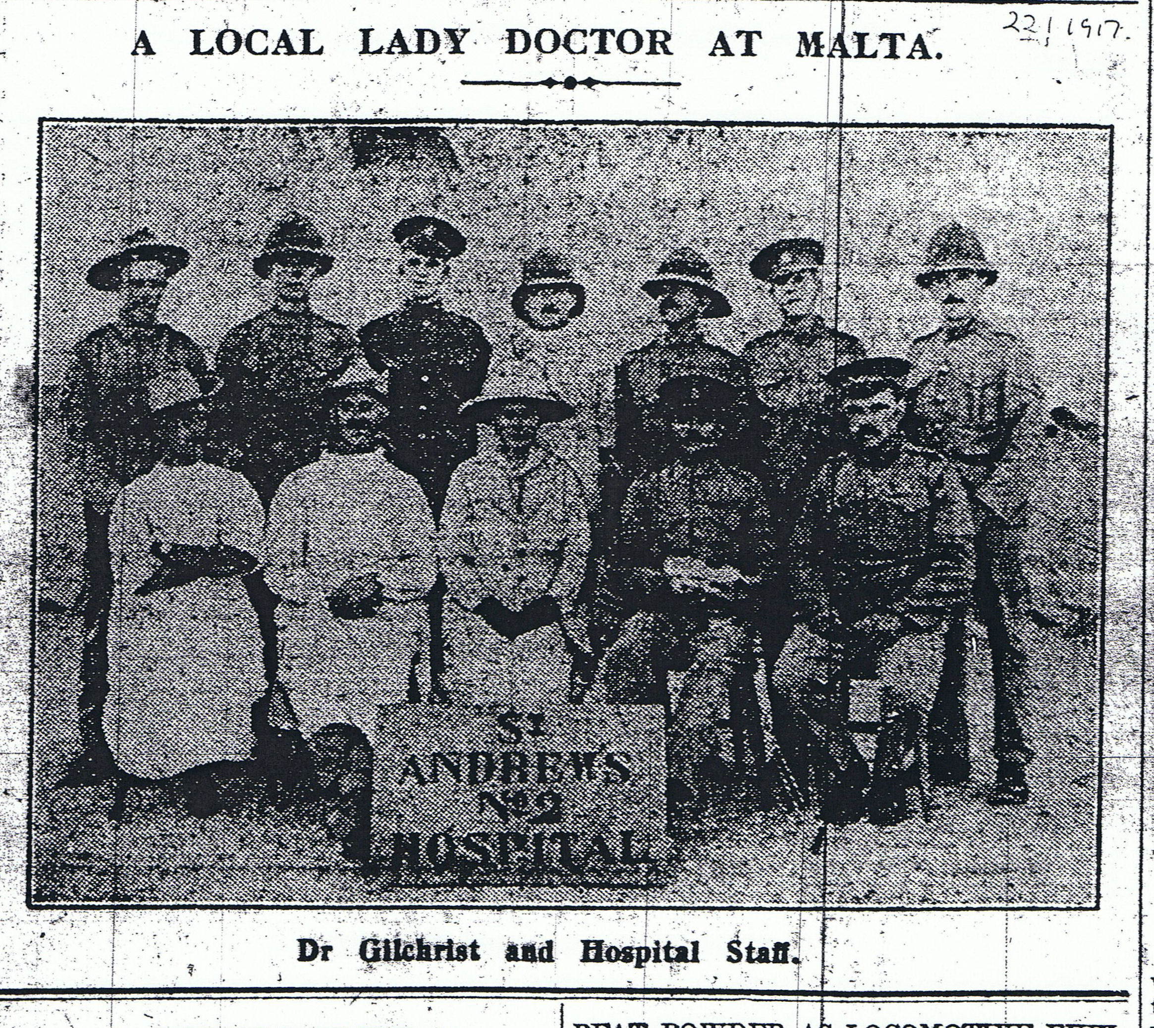 dr elizabeth gilchrist in Malta Greenock Telegraph 22.1.1917